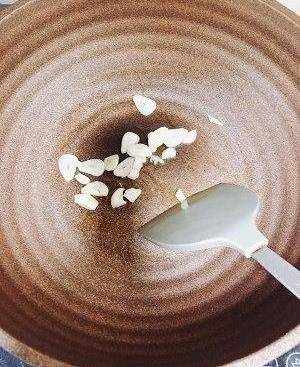 4.起锅放入一点点油把大蒜片炒香