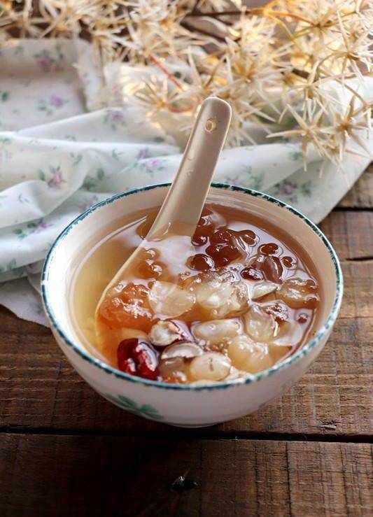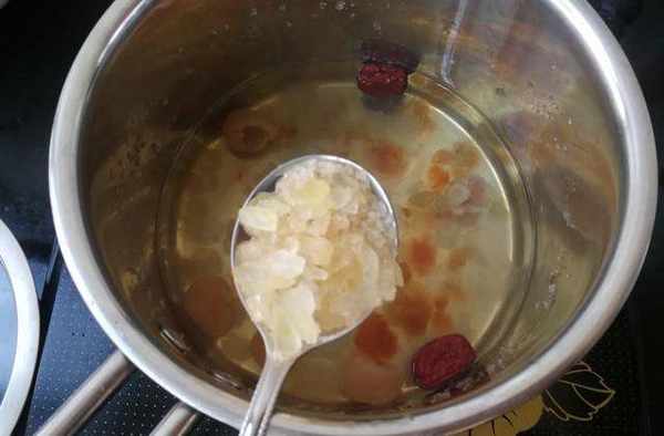 主材料:花旗参片10克,皂角米10克,桃胶3克,桂圆肉10克,红枣2个