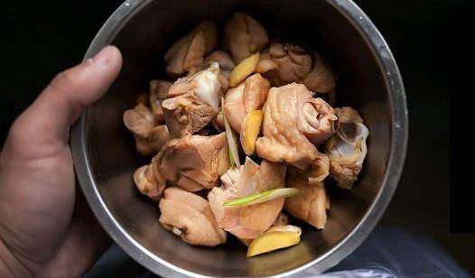我们把鸡肉处理干净之后剁成小块,不过这些生鸡肉都是不够干净的,尤其里面的血水腥味很重我们需要焯水来让血水流出来,焯水之后我们要把鸡肉块的水分沥干备用。