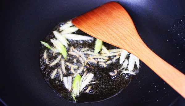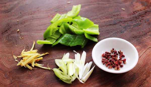 3. 用刀把大葱生姜切成细丝,把青椒清洗干净之后去掉青椒籽,然后再用刀切成片状。