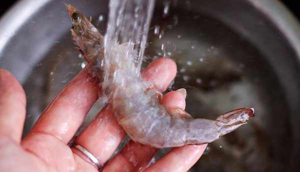 2. 把所有的食材全部都准备好之后,我们需要把大虾的虾线虾须给去除掉,然后我们需要再把这些清理过后的大虾用水反复的冲洗几遍,这样也同样可以有效的去除大虾的腥味。