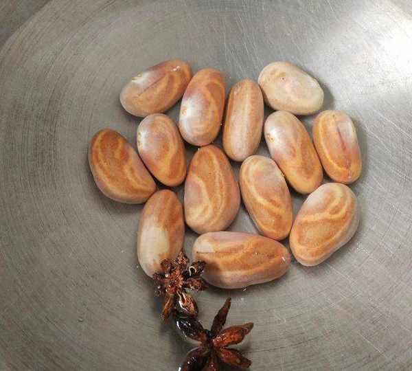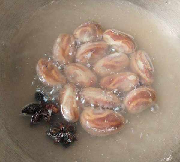 第4步、锅里烧点清水,倒入菠萝蜜核,放2个八角。大火烧开转小火煮15分钟。