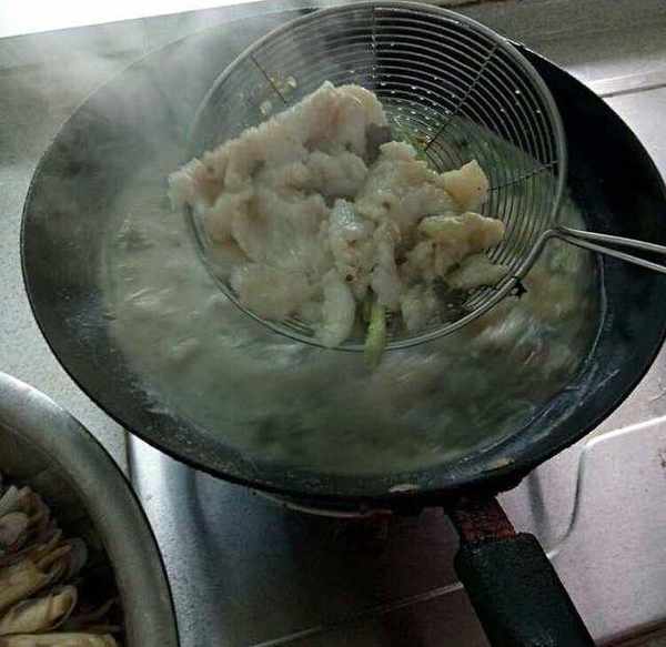 这里选用的是龙利鱼,因为龙利鱼吃起来鲜嫩爽滑,而且没有刺。把龙利鱼切片,然后放入蛋清,盐巴,味精,料酒腌制片刻,再撒上地瓜粉抓匀备用。