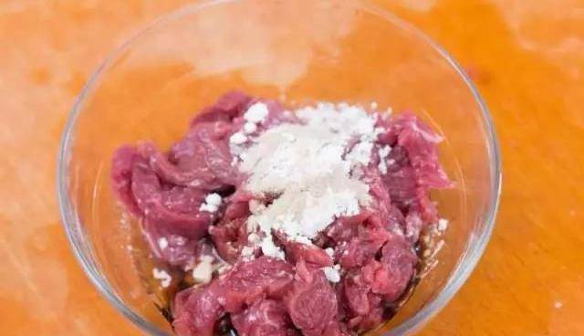 1、牛柳切丝,加入水、绍兴酒、生抽、生粉及胡椒粉腌15分钟;