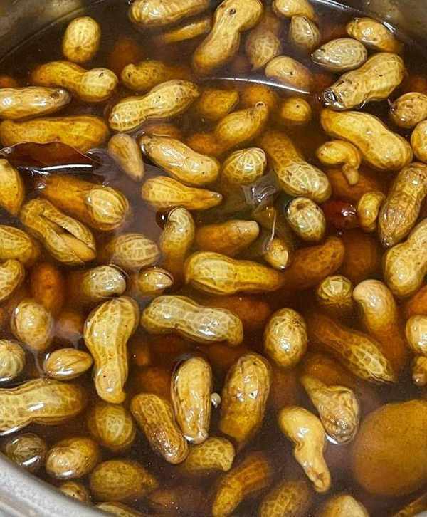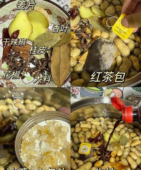 花生、姜片、花椒、大料、香叶、桂皮、干辣椒、红茶、盐、冰糖、生抽