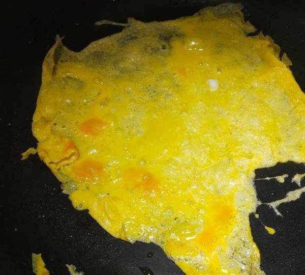 第9步、放平底锅里摊成蛋皮。