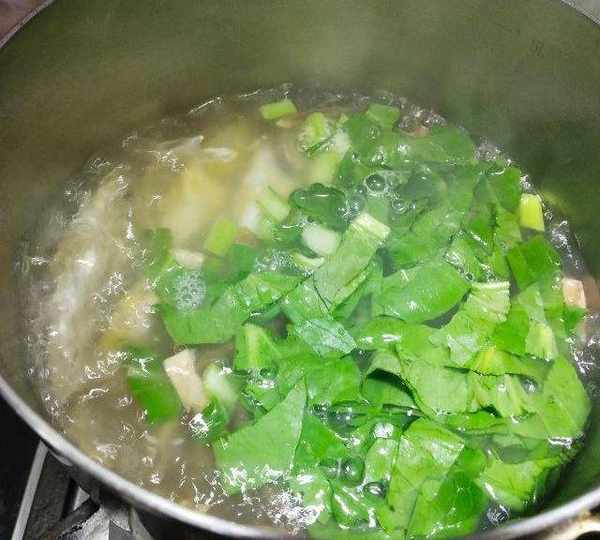 第12步、放入青菜烧片刻。