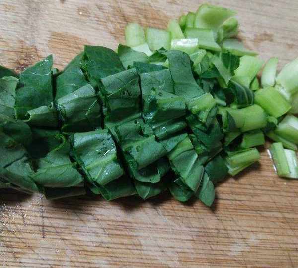第7步、我那种的青菜不用泡水,冲洗掉上面的泥巴即可,切成小段。