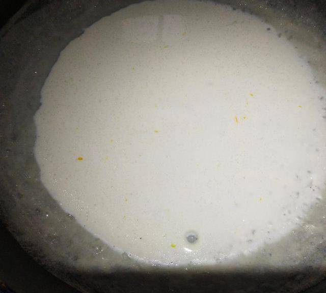 第4步、摊好的番薯蛋液是这样的。