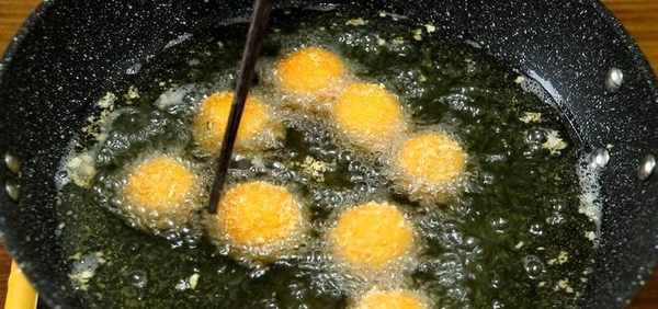 炸到丸子没有生面粉的时候就可以出锅了。