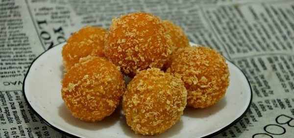 南瓜,糯米粉,豆沙,热水,面包糠,淀粉,鸡蛋。