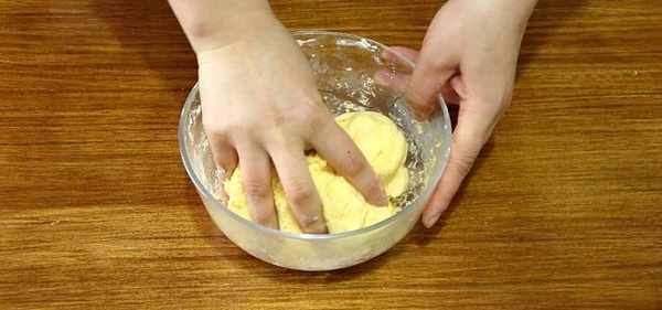 趁热往南瓜泥里面加适量的糯米粉,糯米粉不要一次加太满,可以一点一点的加,和成软硬合适的面团就可以了。