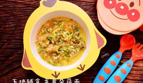 今天我们这是一款适合七个月小朋友吃的小颗粒的面,叫做杂蔬蛋黄面,这个里面不仅有蛋黄,而且还有很多蔬菜,不同种类的蔬菜也是可以让我们的小宝宝来自己选择~