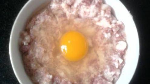 1. 所需材料准备好,用土鸡蛋,又叫笨鸡蛋、此蛋营养高,再猪肉切瘦肉做。