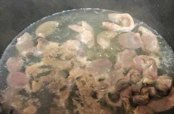 第二步:锅里烧水,加入鸡肾薄片,再倒入适量的料酒,盖上锅盖,煮4分钟捞出备用。