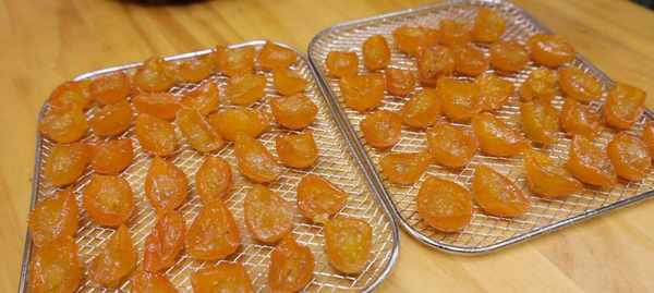 11、上面就是烘干水分的金桔,一颗颗亮晶晶的,这时已经可以吃了。