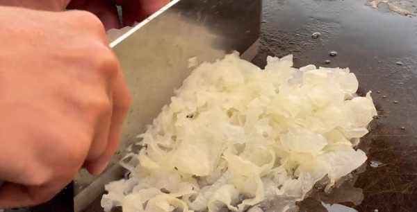 3、还要准备一些银耳,提前浸泡半小时,然后切碎备用。