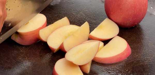 1、首先准备2个苹果,切块,去掉中间的心备用。