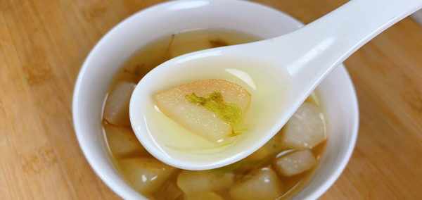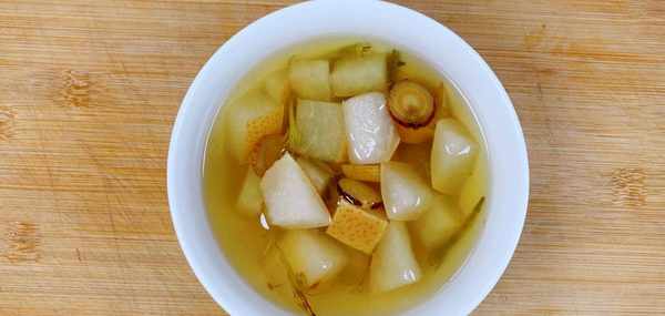 具体做法:1、准备一个水分充足的雪梨,放入大碗内,撒入适量的食用盐,倒入适量的清水,用盐水把它搓洗干净,洗去梨皮表面的灰尘和农药残留,最后再用清水多清洗几遍。雪梨不要去皮,带着皮煮出来的水更加的营养,把雪梨切成小块,梨核去掉不要。再准备适量的金银花冲洗干净,适量的甘草也冲洗干净,把所有的食材放入盘内备用即可。
