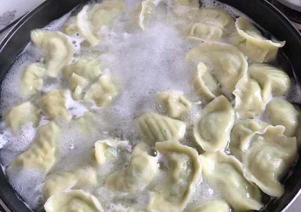 6、下饺子的时候最好等到头锅水快要开的时候再下。不要冷水就下饺子。头锅水不能太少,不然饺子容易沉底,易破。