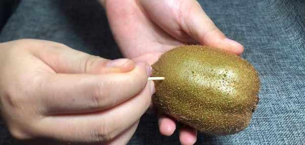 准备1根牙签,给需要催熟的猕猴桃扎几个小孔,促进猕猴桃中乙烯的释放,从而达到加快成熟的效果。接下来准备一个保鲜膜,把猕猴桃挨个包裹起来,包裹的时候注意把保鲜膜里的空气全部排出。包裹完成后,把猕猴桃放到阴凉通风的地方,只需4-5天的时间,即可催熟。