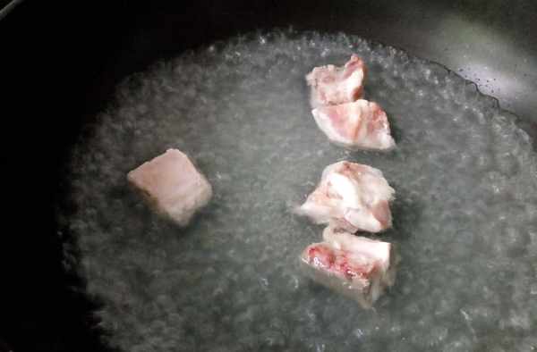 3.排骨加水,煮开绰下,捞起备用。