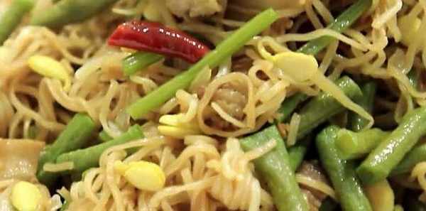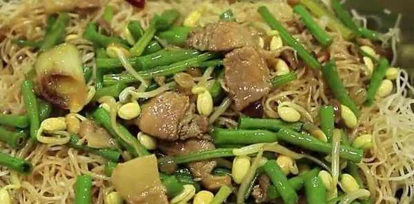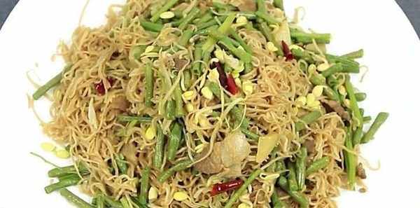 原材料:大葱白、生姜、面条、芹菜、黄豆芽、五花肉、嫩豆角