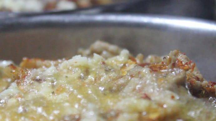 第二步。将腌制好的肉放进油锅里,炸熟之后,进行控油备用就可以了。