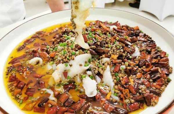 灯影水煮鱼:主料黑鱼片、辅料:豆芽菜,青笋条、冬笋片,干辣椒段、花椒、色拉油!现将片好的黑鱼片用清水洗净去干水分、加入鸡汁2克,盐2克,胡椒粉2克,腌制入味,在加入鸡蛋清一个伴均匀,最后上入红薯粉浆放入冰箱冷藏十分钟!锅中放入色拉油,下入洋葱丝、小葱、香叶、桂皮、草果、回香、白止以上香料少许与油炼出香味后捞出料!倒出油!锅中放入开水下入豆芽和笋条开锅捞出、锅中放入少许油加热后下入干辣椒段少许、葱姜片爆香后放入豆芽和笋条加入少许盐、味翻炒均匀装盘!锅洗净后加入清水烧开后下入鱼片煮两分钟捞出装盘,在把水煮鱼辣椒下入煮一分钟捞出沥干水分、锅中倒入炼好的油烧制180度下入辣椒段和花椒爆香浇在鱼面上,撒上葱花即可!