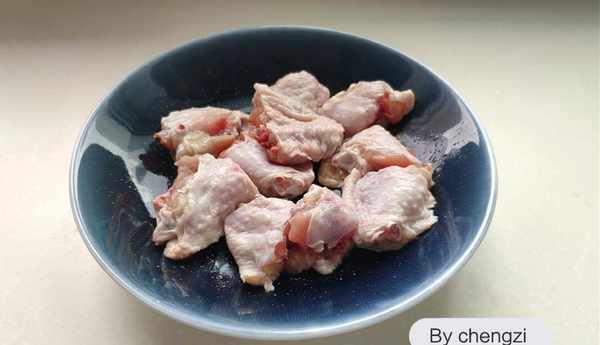 2、鸡翅最好用鸡翅中,或是用鸡腿也可以,这两个部分的鸡肉更鲜嫩,把鸡翅中从中间剁开,清洗干净。