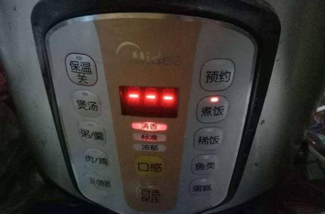 10、把食材和大米都装入电饭锅中之后,盖上盖子,按上煮饭的功能键即可,根据个人的口感来选择,可以选择清香,或是标准,待时间一到,这一锅香喷喷的排骨焖饭就做好了。