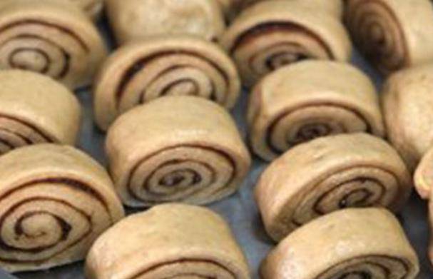 然后我们在案板上撒上少许的干面粉,把发酵好的面团从和面盆中取出来,然后把面团好好的揉一揉,将面团里边的空气充分的排出,等面团揉好以后,我们就可以用一个擀面杖把面团擀成一个大的面皮,厚度大概在0.5厘米左右就可以了。然后我们把之前做好的红糖留心下,均匀的铺在面饼上。不过在边缘的地方可以不用撒,否则的话在收口的时候就容易流出来,然后我们把整张面皮从一边卷起来,转到另一边收好口,然后用刀切成一个个小的花卷馒头,然后进行第2次发酵,到第2次发酵好的时候拿起来手感会明显的感觉到发轻,然后就可以上蒸锅蒸了。