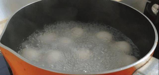 6.锅中做水,水开以后放入小糯米团子,煮至飘起来就可以捞出来了。