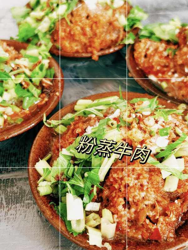 #粉蒸牛肉 个人觉得最有价值且点的最值的一道菜,碗碗子,小碟碟,粉蒸蒸的牛肉坨坨,端出来的时候撒点香菜和蒜泥,味道还是香~