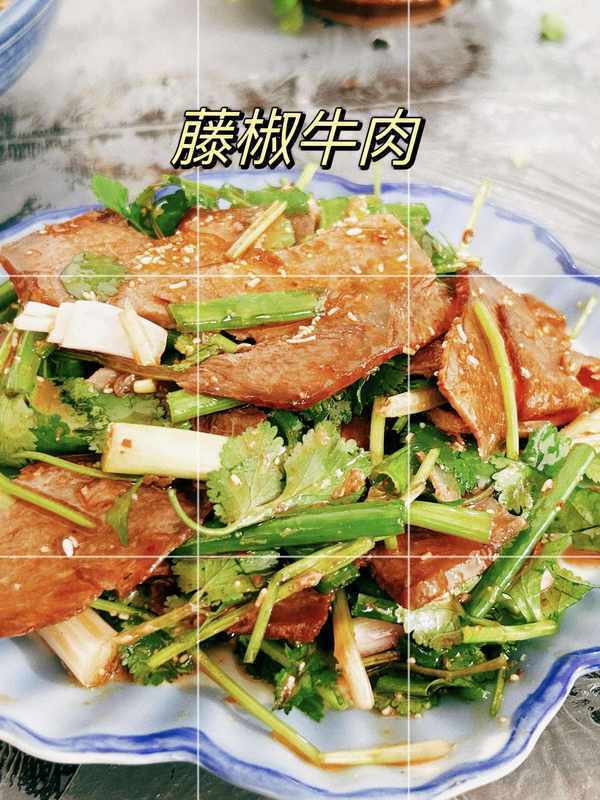 #藤椒牛肉 完全没有藤椒味,甚至觉得没有啥味儿,就凉挫了哈端上桌凑合,下面一大堆铺的大葱香菜之类的,上面几片牛肉,可能适合不爱辣口的吧~