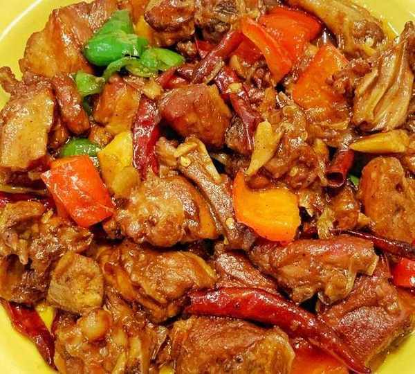 8、最后还剩一点汤的时候,倒入青红椒,转大火收汁即可。