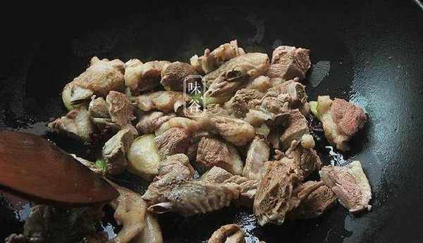 4、把处理好的的鸭子全部放进去翻炒,直到炒出香味来;