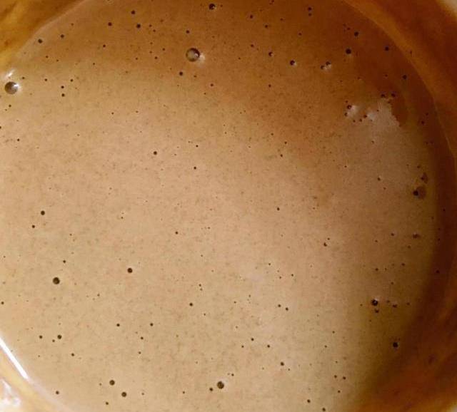 2.接下来准备麻将酱料,在碗中放入芝麻酱,加点凉白开稀释一下,搅拌均匀。