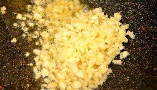 1、将花生酱倒进锅中,烧热,将大蒜放入锅中,趁热炸制香味,盛起。