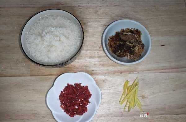早上准备一碗米酒(醪糟),红糖切碎,生姜切丝(不喜欢的可以不加,不过冬天加姜可以驱寒),枸杞一把