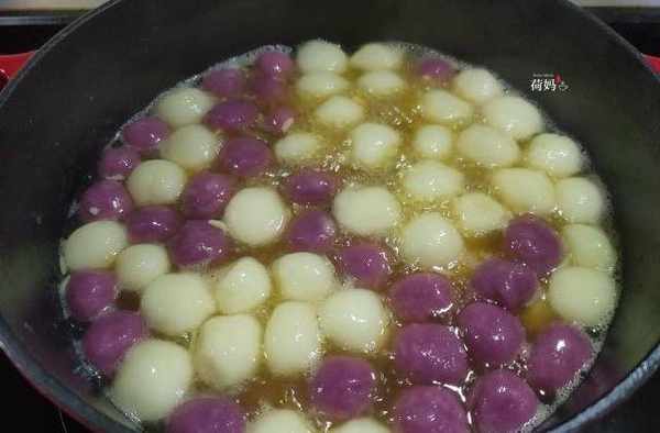 这次用的糯米团子是婆婆自己做的,为了让丸子有颜值颜色好看,自己加了紫薯粉,搓了一半的紫色丸子,搭配白色丸一起,颜色好看不单一。以前家里做的比较多的是蛋花酒酿圆子,这次去掉鸡蛋,用红糖代替冰糖,还添加生姜,更适合女孩子经期食用。
