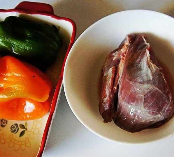 第2步、青红椒洗净,牛肉冷水浸泡出血水
