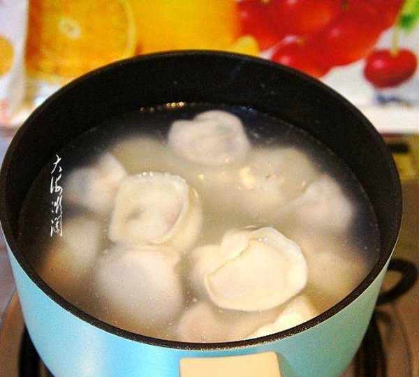 第11步、煮饺子:锅中加入适量的水,大火烧开,下入包好的元宝饺子,煮开,加入半碗冷水继续煮开,再次加入冷水,第三次煮开饺子就煮好了。