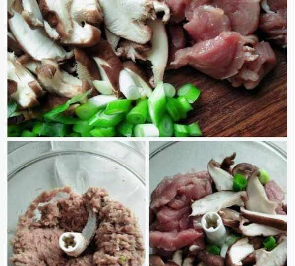 第2步、把里脊肉,香菇,香葱洗净切一切打成馅。