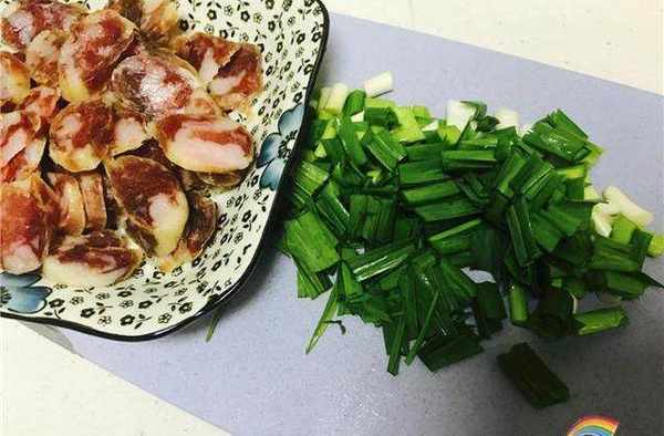 香肠切薄片,个人觉得也无需太薄啦。太薄了影响口感,当然也可能是我自己贪吃吧