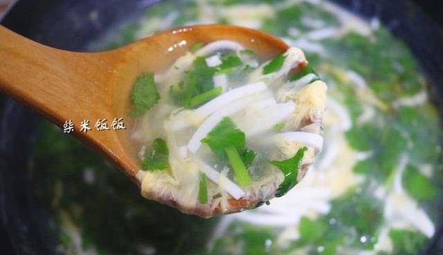 6,最后放入香菜碎,再加盐、鸡精、香油调味即可。简单快手,几分钟就好。