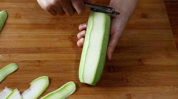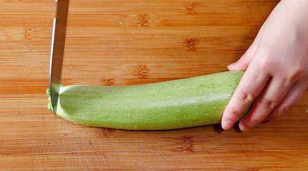 1、 将西葫芦清洗干净,切去蒂,然后用削刀削成薄片;