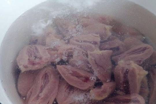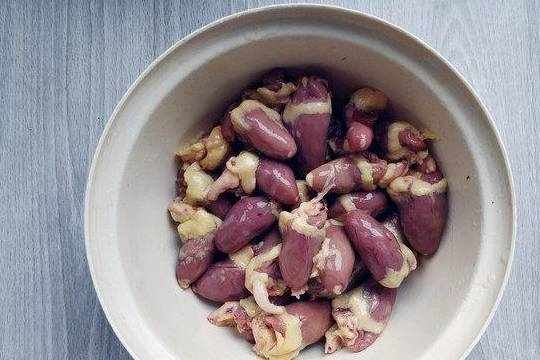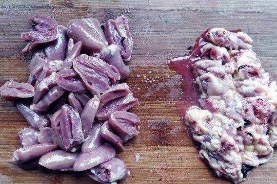 1.将鸡心在冷水中浸泡一会儿,倒掉血水,泡除血水是除腥的第一步