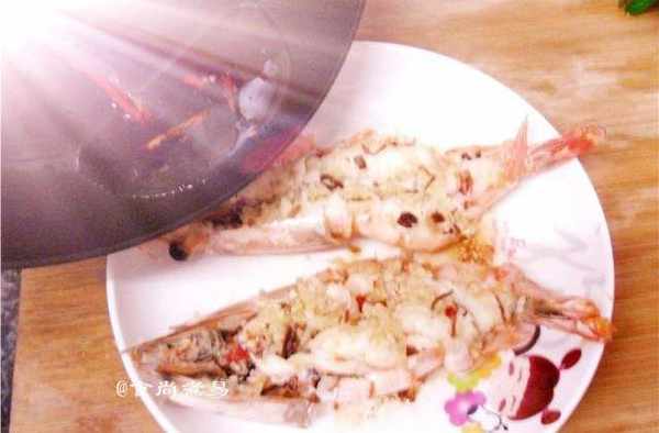 舀起均匀铺在海虾上面,放入蒸锅中,大火蒸12分钟左右;