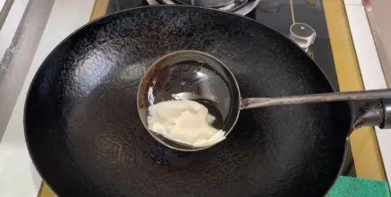 4. 现在在锅中放一点猪油,开大火把油烧热,然后放几粒花椒爆香,随后加入准备好的蒜姜和干辣椒,炒出它们的香味。